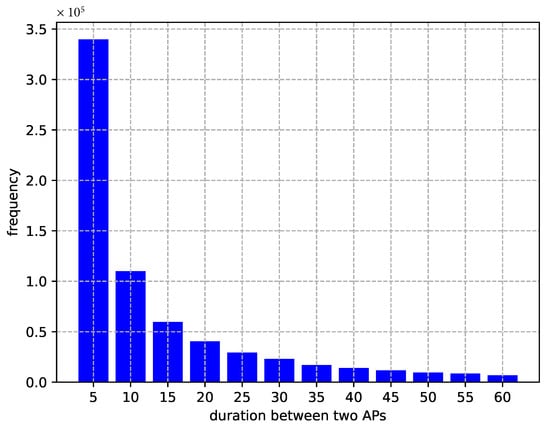where the numerator is the count of single movement from to in the training dataset while the denominator represents the sum of the transition trajectories that are originated from ; n is the total number of Wi-Fi access points.