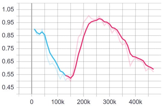 The mostly adjusted parameters were batch size, buffer size, learning rate, and beta. ML-Agents have typical range values for each parameter, so some of them were left as default. ACSystemDiscrete is the name of the YAML file configuration that needs to be equal to 1 inside Unity. The next parameter is trainer type, which shows the used algorithm, in this case proximal policy optimization (PPO). Parameter batch size is the number of experiences in each iteration of the gradient descent. Several changes were conducted, but leaving it at the default value proved to work best. Since buffer size needs to be multiple times greater than batch size, after some testing, it was set to 10,240 and proved to be the most stable during training. Buffer size is the number of experiences that must be collected before updating the policy model [20]. While testing, entropy was monitored all the time, which shows the randomness of the agent actions [21]. If entropy is high, the agent is conducting random actions in order to conclude and learn something, but if entropy stays high all the time, the agent is not able to learn anything from it. Because of that, parameter beta needs to be properly set since it shows the strength of the entropy regularisation. The last one edited was the learning rate, showing the strength of update for each gradient descent step [20]. After testing out the parameters, the training of agent was able to start.