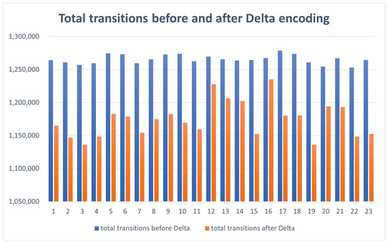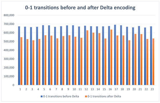 - A2: The transitions from 0 to 1 following Delta coding (estimated by multiplying the total transitions by weight). Comparison results are given in Figure 3.