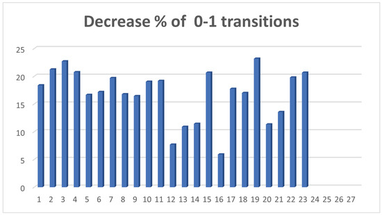 - A4: The total number of transitions following coding ((0-0) + (1-1) + (1-0) + 5 * (0-1)). Comparison results are given in Figure 4.
