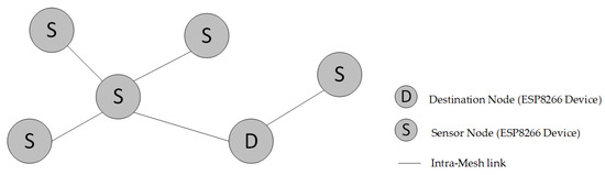 - Yoppy Arjadi, R.H.; Setyaningsih, E.; Wibowo, P.; Sudrajat, M.I. Performance Evaluation of ESP8266 Mesh Networks. J. Phys. Conf. Ser. 2019, 1230, 012023. [Google Scholar] [CrossRef] [Green Version]