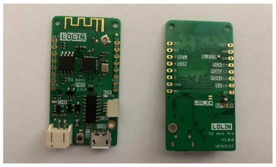 - WEMOS. D1 Mini Pro. Available online: https://www.wemos.cc/en/latest/d1/d1_mini_pro.html (accessed on 23 February 2022).