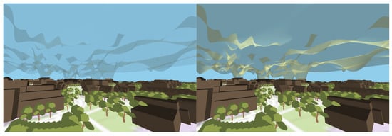 We perform the volume rendering in this paper in conjunction with traditional mesh rendering using rasterization. This rendering is a part of a multi-step rendering pipeline shown in Figure 1. First, we render a skybox as a background using the standard skybox shaders. We then render the buildings as one large mesh, the campus map as a single textured quad, and the vegetation inventory as multiple instances of a single tree object. Finally, we perform volume rendering with a GUI interface.
