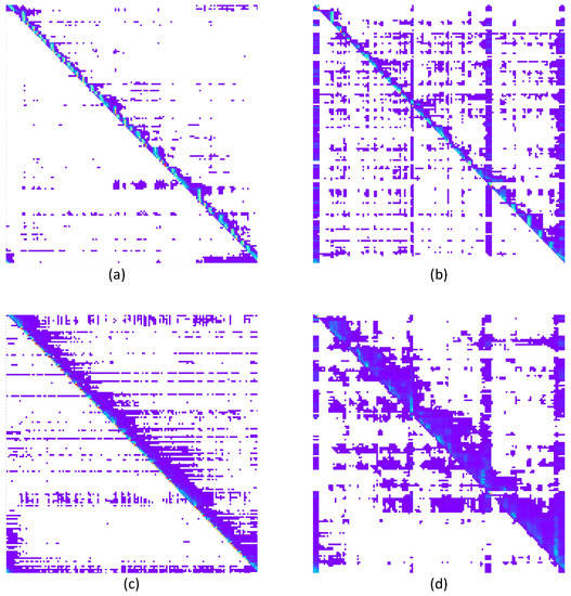 The dot product self-attention focuses on the similarity between the query vector and each of the key-value vectors as weights and then sums the weights over all the real-valued vectors, as defined as Equation (1), where denote the query matrix, the key-value matrix, and the real-value matrix, respectively; denotes the length of the input vector; denotes the dimension of the input vector; and is the attention matrix. To prevent backpropagation from falling into regions with a small gradient, the variance of the attention matrix is reduced by the .