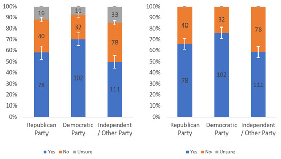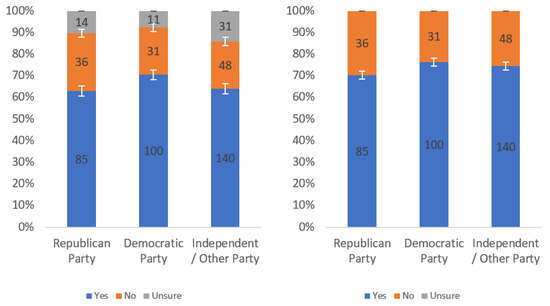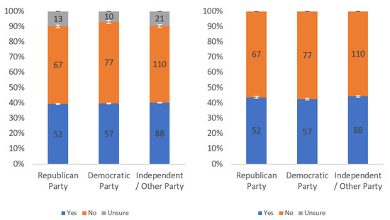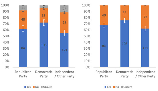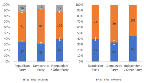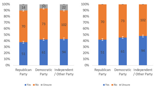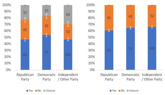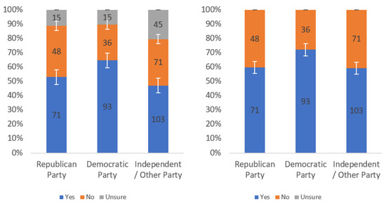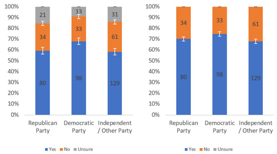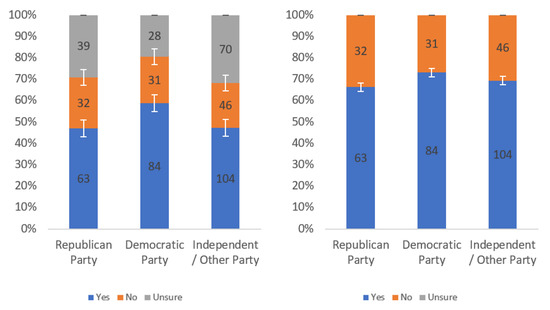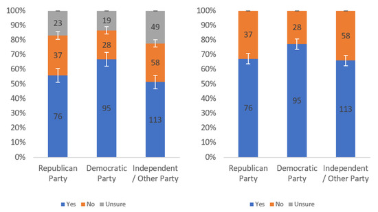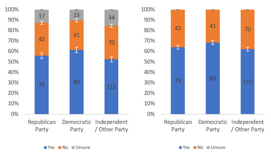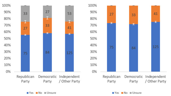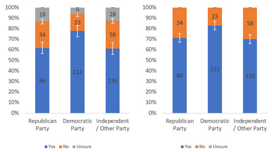 Respondents were first asked whether they would find this label helpful. Responses to this question, analyzed by income level, political party affiliation and internet usage levels, are presented in Figure A1, Figure A2 and Figure A3, respectively. Each figure shows the responses including (left) and excluding (right) “unsure” responses.