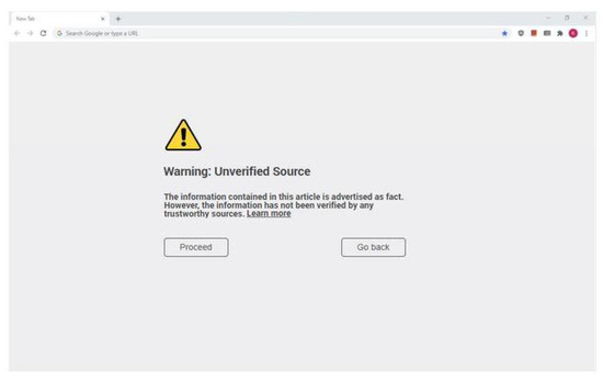 Fake news labeling begins with its identification and classification. Identification drives label display, while classification is key to the information that is provided on the label. A variety of forms of identification are possible (see [50,51] for an extended discussion). Manually curated, automatically generated or hybrid manual/automated approaches can be utilized. Zhou and Zafarani [21] describe identification approaches based on style, network analysis and distributing users. Wang [52] demonstrated an automated approach using machine learning with manual annotations. A variety of other automated techniques exist including those that use graph-attention neural networks [53], natural language processing [54], neural stacking [55] and deep neural networks [56]. The social sciences have also contributed through the consideration of emotion cognizance [57] and the use of signal detection approaches [58].