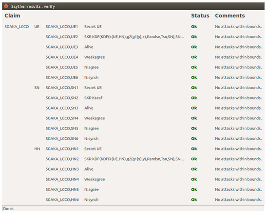 - Edris, E.K.K.; Aiash, M.; Loo, J.K. Formal verification and analysis of primary authentication based on 5G-AKA protocol. In Proceedings of the 2020 7th International Conference on Software Defined Systems (SDS), Paris, France, 20–23 April 2020; pp. 256–261. [Google Scholar]