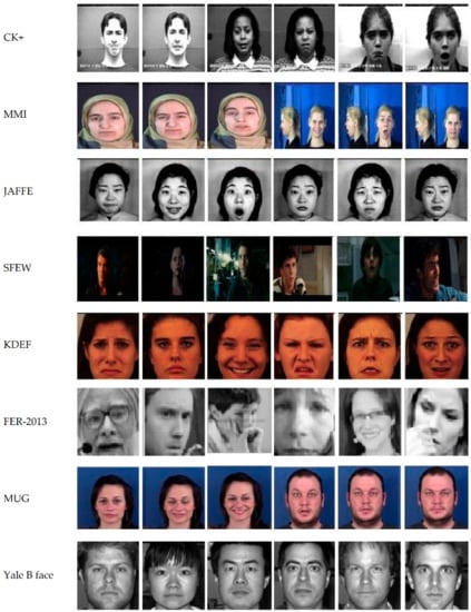 Experts from different institutions have generated several datasets to evaluate reported methods for facial expression classification [69,70]. Accordingly, a detailed overview of some benchmark datasets is presented.