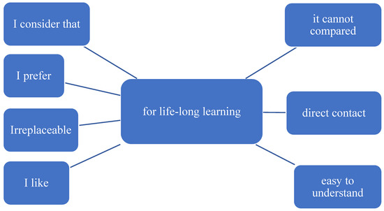In a similar context, Figure 4 highlights the learners’ views as they compare online learning with learning in the physical learning environment and identify the reasons why they prefer to be in the physical learning environment. The three learners who prefer the online learning were the learners S2, S4 and S8, who are married and workers. It seems that the online education serves them for professional and family reasons.