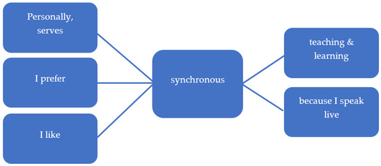 Finally, Figure 5 shows the reasons why learners prefer synchronous online education over asynchronous. From the tree, it seems that synchronous online education provides the opportunity for communication, which was largely absent from everyday life due to the pandemic.