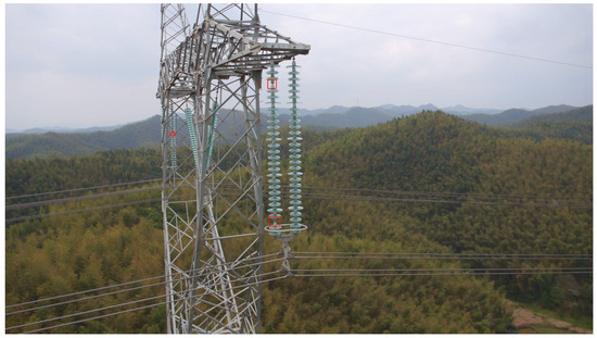 As the most common equipment on a transmission line, an insulator plays a role among conductors, cross bars, and towers. The safe and stable operation of insulators is very important for the safety of transmission. Among the factors affecting the safety performance of insulators, insulator self-explosion (see Figure 1) is the most prominent problem [1,2]. Therefore, the timely detection of faulty insulators is an important way to solve the hidden risks of high-voltage transmission lines.