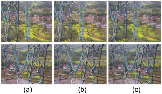 The original data set contains 85 insulator images (OR) with a resolution of 1024 × 768. First, resize the original dataset into 256 × 192 low-resolution images (LR). Then, use SRGAN to generate photo-realistic high-resolution images (SR) with high upscaling factors (4×). Finally, our new data set contains the original data set (OR) and the reconstructed image (SR) generated from the LR image. The example images that were interpolated and super-resolved with a 4× upscaling factor are shown in Figure 7.