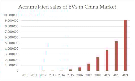 Accumulated sales of EVs in China, data source: MarkLines database.