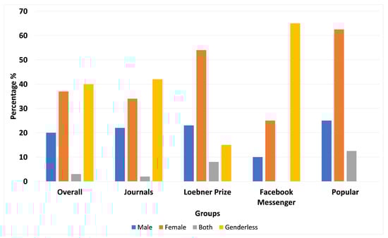 - Abercrombie, G.; Cercas Curry, A.; Pandya, M.; Rieser, V. Alexa, Google, Siri: What are Your Pronouns? Gender and Anthropomorphism in the Design and Perception of Conversational Assistants. In Proceedings of the 3rd Workshop on Gender Bias in Natural Language Processing, Online, 5 August 2021; pp. 24–33. [Google Scholar] [CrossRef]