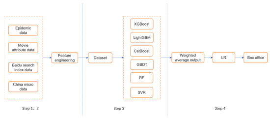 Machine learning is a research hotspot in the field of artificial intelligence, and its theories and methods have been widely applied to solve complex problems in engineering applications and scientific fields [1,2]. At present, there are few pieces of research on box office prediction in China, and most of the existing methods use multiple linear regression. The prediction method of multiple linear regression is lagging behind other methods, and the prediction error of a single model is relatively high. At present, the prediction performance of a multi-model ensemble algorithm is relatively strong, and a multi-model ensemble can help improve the generalization ability of the model and reduce the prediction error of the model.