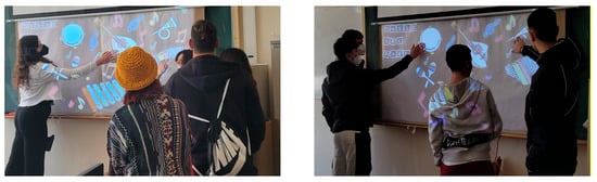 The present work showed that using simple low-cost materials in combination with open-source software tools, one is able to build a functional interactive surface. This surface was used as a simplified example demonstration of the research that is carried out by our Sensor Networks laboratory during the visits of various schools in our university. Figure 30 illustrates the use of our surface by the students. The comments received from them were very positive not only for the attractiveness and the simplicity of this construction but also for its performance.