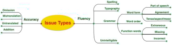 - Lommel, A. Metrics for translation quality assessment: A case for standardising error typologies. In Translation Quality Assessment; Springer: Berlin/Heidelberg, Germany, 2018; pp. 109–127. [Google Scholar]