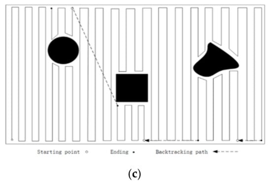 - Li, K.; Chen, Y.F.; Jin, Z.Y.; Liu, T.; Wang, Z.T.; Zhang, J.Z. A complete coverage path planning algorithm based on backtracking method. Comput. Eng. Sci. 2019, 41, 1227–1235. [Google Scholar]