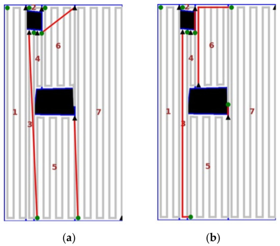 - Oksanen, T.; Visala, A. Coverage path planning algorithms for agricultural field machines. J. Field Robot. 2009, 26, 651–668. [Google Scholar] [CrossRef]