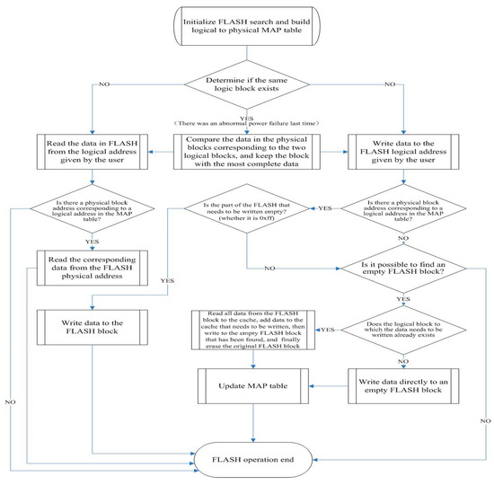 The first four bytes of each FLASH are used to store, and one gSF Map[ ] and one gSF Status[ ] are used to identify the logical address of this FLASH block and whether it has been used. The process of realizing the storage mechanism is shown in Figure 4.