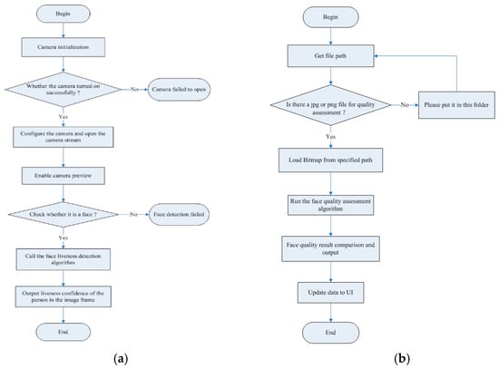 Face algorithm program: (a) is the main program of the liveness detection algorithm, (b) is the main program of the quality assessment algorithm.