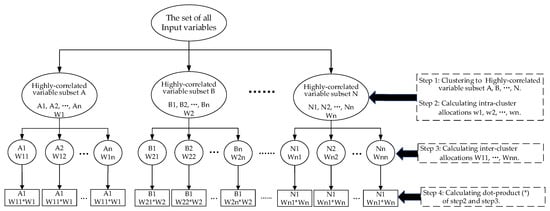 (1) Clustering all input variables into subsets of highly correlated variables by a hierarchical method.
