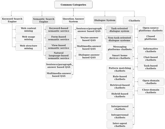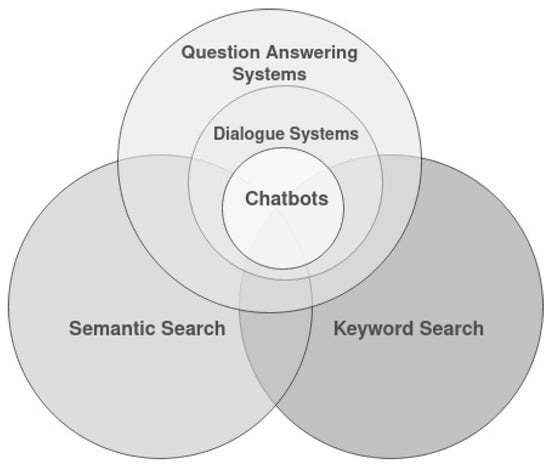 A vast number of techniques and approaches have been proposed to provide search services on the web since the advent of the web [,]. Search services can be essentially viewed as answering machines. Search engines such as Google, Baidu, and Yahoo, with the most traffic [], scour billions of pieces of the web and evaluate thousands of factors to determine which content is most likely to be relevant []. Here, keyword search engines, semantic search engines, question answering systems (QASs), dialogue systems, and chatbots can be considered as the main proposed types of search services.