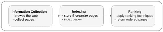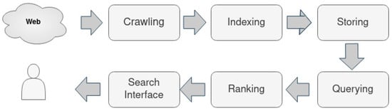 The immense amount of data on the web has created the need for search services to explore and fetch the desired information. With the widespread use of the internet of things and social networks, it is expected to have a further substantial increase in the amount of data generated [,]. Although estimation of the actual amount of data available on the web is difficult, there are some astounding numbers. In 2020, 1.7 MB (Megabytes) of data has been created every second by every person and 463 EB (Exabytes) of data will be generated each day by humans as of 2025 (https://www.weforum.org/agenda/2019/04/how-much-data-is-generated-each-day-cf4bddf29f/, accessed on 1 July 2022). So, with the huge amount of data being generated, it is irrefutable that finding the needed information on the web requires search services which embody extremely powerful and valuable tools for fetching any sort of information from the web [].