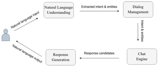 Chatbots are designed to simulate human-like conversations []. Chatbots’ early and primary role has been constructing extended conversations to mimic chats characteristic of human interaction. However, chatbots have been employed to do practical tasks over time [,]. Chatbots can be divided into three groups upon goals being achieved: informative chatbots, chat-based chatbots, and task-based chatbots [].