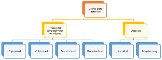 In [], license plate detection methods are divided into traditional computer vision techniques and classifiers. Figure 4 (directly extracted from []) shows this division: