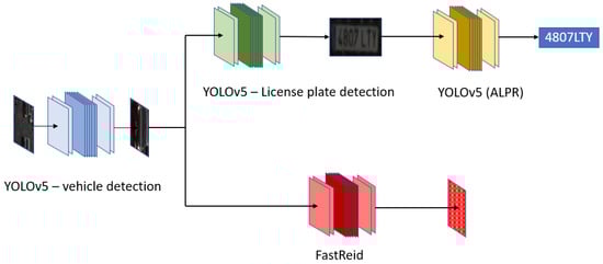 Our solution is a combination of two capacities that have been previously mentioned: license plate recognition and vehicle re-identification. As mentioned in the previous section, the idea is to apply the two-factor authentication concept to vehicle recognition, which offers the final user a wider range of capabilities for identifying a target. This idea is very relevant, because in critical situations (real-time tracking), it is not possible to discard a target due to image occlusion (which could affect license plate recognition). In fact, in real conditions, an officer would check for possible positives, even if they were false.