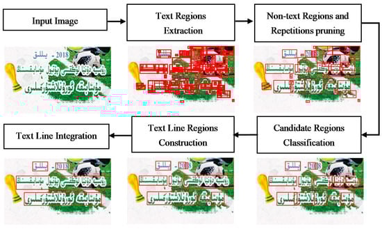 Optical Character Recognition (OCR) research has a long history, and text detection and recognition in images has achieved enormous success in English and Chinese [,,,,]. But the characters of Uyghur text are quite different from the majority languages, so we need to improve the text detection and recognition methods according to the characteristics of Uyghur text.