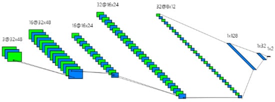 In order to quickly and effectively remove the non-text regions which are hard to be prune by heuristic rules, a simple CNN classification model is designed with reference to AlexNet, and the network architecture show in Figure 7. The input images are all resized to () pixels, and the result of the output is the label of text or non-text. The network is trained with the Adam optimization algorithm. The learning rate is set to 0.001 and the multiplier factor (gamma) of the learning rate is set to 0.1, and the loss function select the Cross Entropy Loss []. And the CNN classification model trained by the above cropped regions dataset, which contains positive samples and negative samples. When doing training, the samples are resized to the same size. As we only focus on Uyghur text detection, the CNN classification model is only trained on Uyghur texts and numbers.