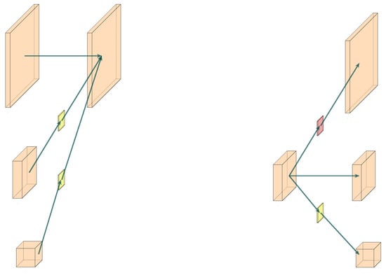 where is the input feature map and is the kernel of convolution with different sizes. In the case of the same shared sliding window, the feature map with the same size can be obtained with fewer parameters []. To sum up, the operation process of the asymmetric convolution is shown in Equation (4):