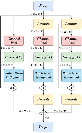 - Misra, D.; Nalamada, T.; Arasanipalai, A.U.; Hou, Q. Rotate to Attend: Convolutional Triplet Attention Module. In Proceedings of the 2021 IEEE Winter Conference on Applications of Computer Vision (WACV), Waikoloa, HI, USA, 3–8 January 2021; IEEE: Piscataway, NJ, USA, 2021; pp. 3138–3147. [Google Scholar] [CrossRef]