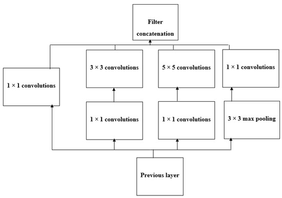 - Szegedy, C.; Liu, W.; Jia, Y.; Sermanet, P.; Reed, S.; Anguelov, D.; Erhan, D.; Vanhoucke, V.; Rabinovich, A. Going deeper with convolutions. In Proceedings of the 2015 IEEE Conference on Computer Vision and Pattern Recognition (CVPR), Boston, MA, USA, 7–12 June 2015; pp. 1–9. [Google Scholar]