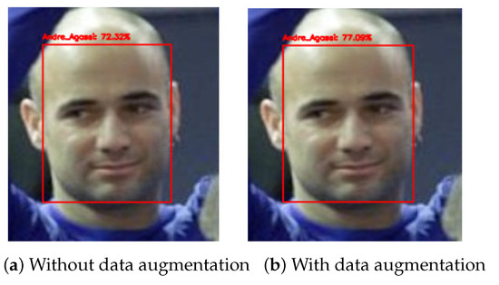A number of studies using deep learning methods have claimed high performance in a significant number of tasks. These include image classification [1], natural language processing [2], and text classification [3]. These models use the Softmax function in the classification layer. However, there have been studies [4,5] conducted that consider SVM as an alternative to the Softmax function for classification. These studies have asserted that the use of SVM in an artificial neural network (ANN) instead of the Softmax function may improve recognition accuracy. In our work, the augmented training data are sent to FaceNet to extract the embedding and then classified using an SVM.