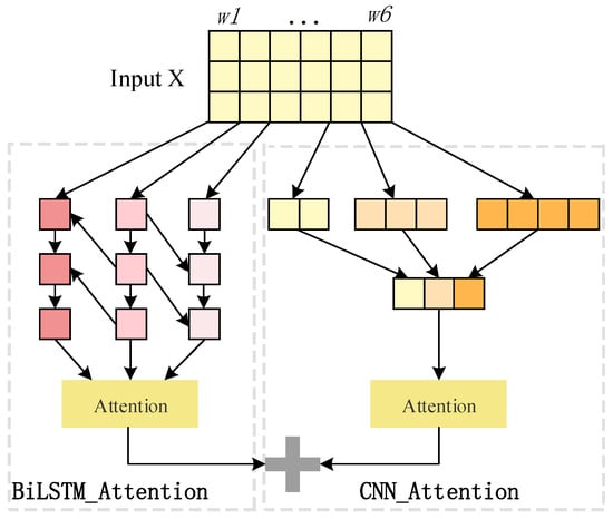 Then, K is taken as the input of the attention layer and the output T2 of the CNN+Attention layer is obtained using Equations (9)–(11). Not only does it contain rich semantics, but it also highlights key information.