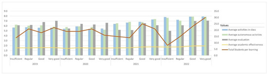Analysis of the data obtained from the 2022 period with the establishment of the categories of learning and academic effectiveness.