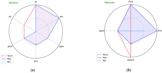 Visual profiles of exemplary students’ programs showing: (a) Built-ins and (b) Methods.