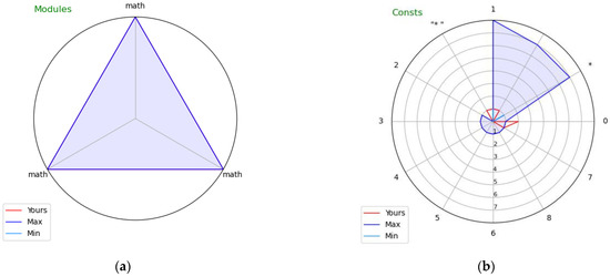 Visual profiles of exemplary students’ programs showing: (a) Modules and (b) Constants.