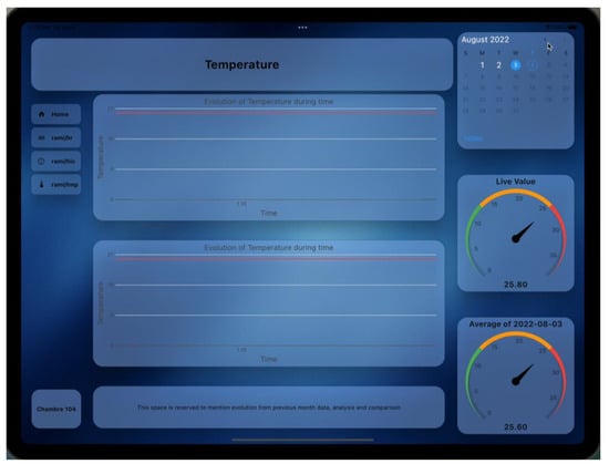 A responsive mobile application was developed in Flutter/Dart to visualize data at the edge and cloud level. Figure 5 shows an overview of the interface data visualization of the developed application.