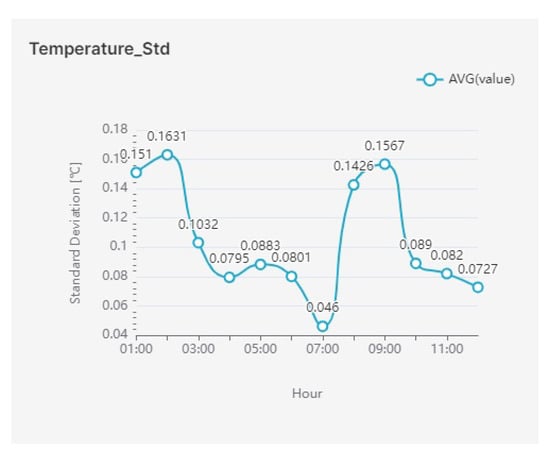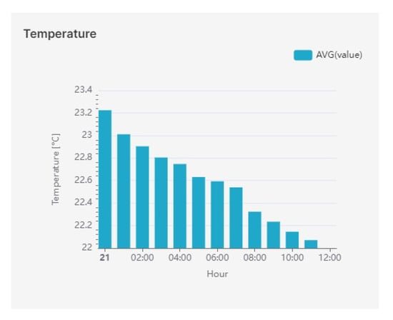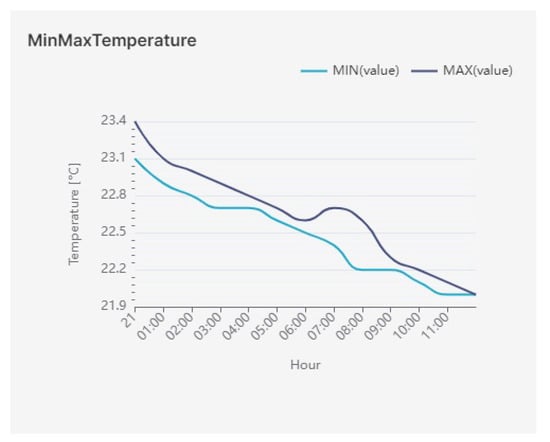 Jangra et al. [], in 2018, proposed a design of a real-time multilayered smart healthcare monitoring framework based on IoT. Their proposal is composed of a Personal Body Area Network (PBAN) composed by various type of sensors (temperature, pulse oximetry, smart watch, blood pressure, etc). Then, after some transformations, the data are sent to the cloud to be monitored, by a gateway which could be a smartphone. As a result of this architecture, they proposed a simulation in LABVIEW software of the body temperature acquired by a temperature sensor. The temperature range is between 36.3 and 37.0 [].