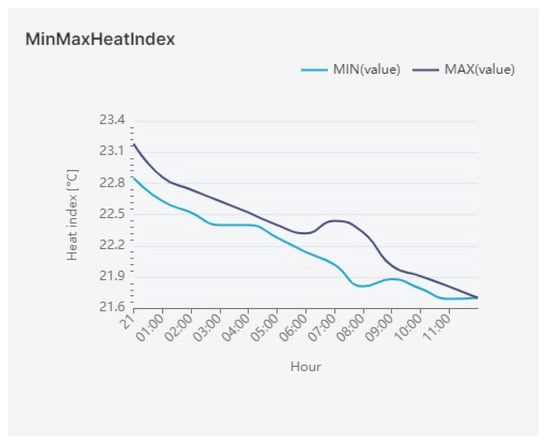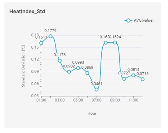 where HI is the heat index (); T is the temperature (); R is the relative humidity (%); = −8.78469475556; = 1.61139411; = 2.33854883889; = −0.14611605; = −0.0123808094; = −0.0164248277778; = 2.211732 × ; = 7.2548 × ; = −3.582 × .