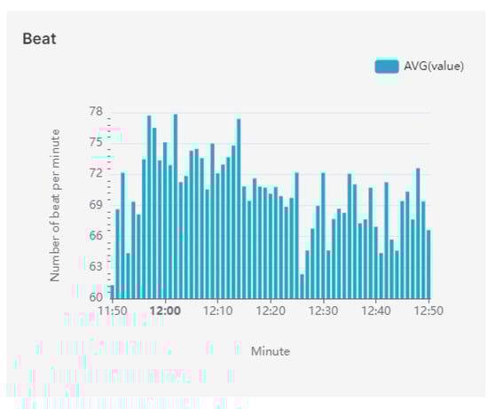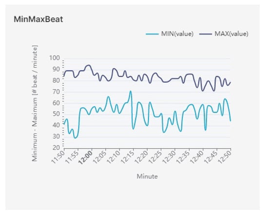 Ruman et al. [] proposed an emergency health monitoring system based on IoT. This architecture is composed by sensors (body temperature sensor, heartbeat sensor, etc), the data processing software (Arduino, ESP8266) and the cloud to store data. To visualize data, they used Thingspeak online software. As a result, they obtained a body temperature range between 35.6 and 37.8 . For the ECG, they obtained a range between 65–73 bpm [].