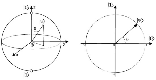 From Equation (8), it can be seen that a qbit belongs to a Hilbert space and can be represented as a sphere. This representation is known as a Bloch Sphere, Figure 2.