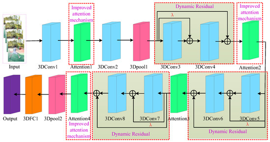 Step 3 Network Optimization: As the network progresses, a dynamic residual network is used to replace the ordinary C3D convolutional layer in order to improve the information flow and speed up the network training.