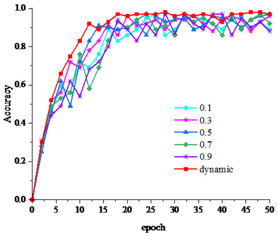 In order to verify the influence of the dynamic residual network on posture recognition of basketball players, a dynamic value obtained by dynamic learning of jump connection line in the dynamic residual network proposed in this paper was used for network training with the given value to obtain experimental results, as shown in Figure 7. As can be seen from Figure 7, the model of dynamic value training is more stable and the curve is more stable, mainly because in the process of network training, the optimal parameters are constantly updated according to the needs of the network so that the posture of basketball movement can be better identified. These results demonstrate that the dynamic residual network can improve the information flow, speed up the network training, and enhance the final recognition effect of basketball actions.