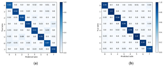 Experimental comparison of confusion matrix. (a) C3D method. (b) Proposed method in this paper.