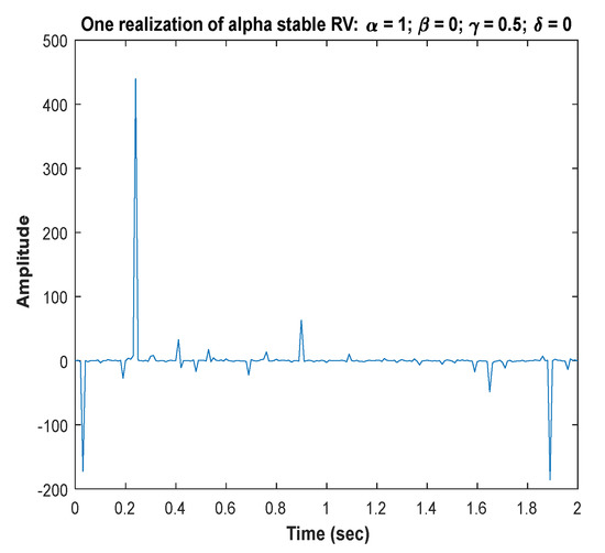 where (0 < α ≤ 2) is also known as the tail index or characteristic exponent. When α < 2, the distribution is algebraic-tailed with a constant tail α, meaning infinite variance. The density of tails becomes heavier as it gets smaller. When α = 2, the SαS distribution is reduced to the Gaussian distribution. When α = 1 and β = 0, the SαS distribution is reduced to the Cauchy distribution. When α = 0.5 and β = 1, the SαS distribution is reduced to the Lévy distribution. The parameter γ > 0, usually called the dispersion, is a positive constant related to the distribution scale. The parameter γ plays a role that is analogous to that of the variance for a second-order process. The skewness parameter is β ∈ [−1,1]. The location parameter is . The procedure of SαS simulation is explained in Appendix A.